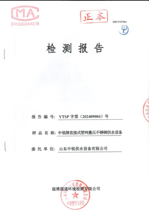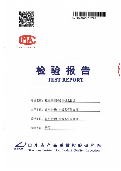 穩(wěn)壓型管網(wǎng)疊壓供水設(shè)備檢驗(yàn)報(bào)告